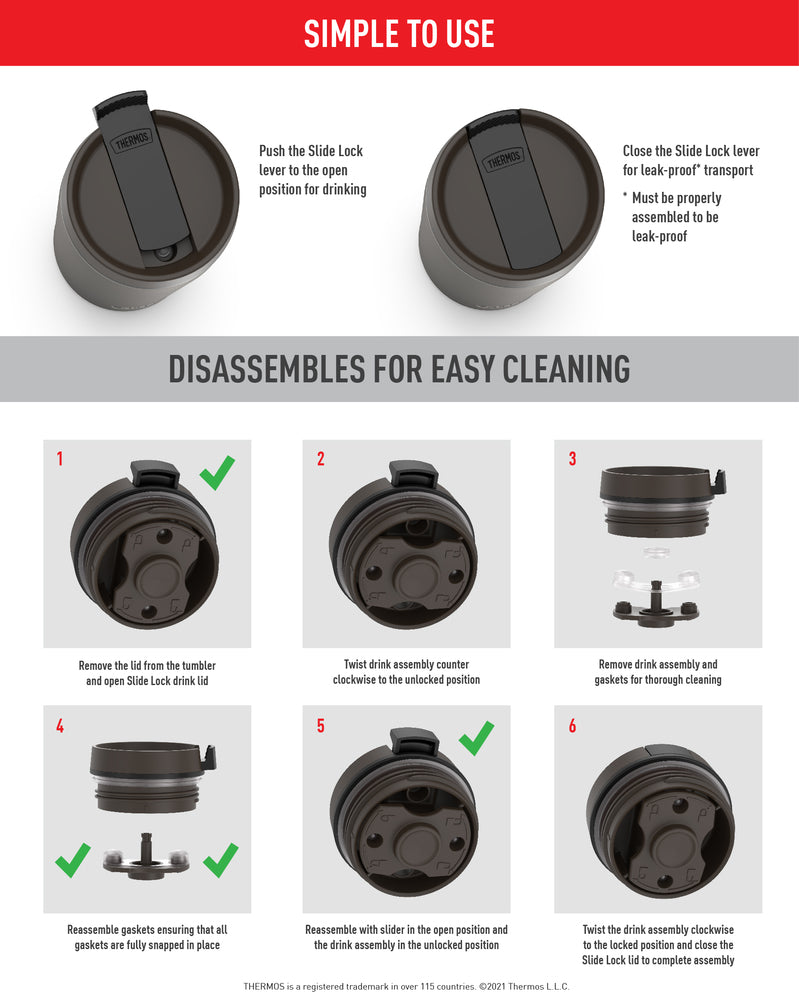 The 12oz Stainless Steel Travel Tumbler from the Alta? Series by Thermos is the perfect size for your morning wake up call. Sometimes life comes at you fast. That’s why we designed this Alta? Series by Thermos product to be the ultimate combination of quality temp insulation. contemporary style and daily reliability that makes short work of any to-do list. Compatible with most single serve brewing machines. making this tumbler convenient for those busy mornings. Thermos? vacuum insulation technology keeps coffee and tea hot up to 3 hours. Cold drinks stay icy cold for up to 10 hours. A slide lock lid helps prevent spills and leaks. Made with minimal parts that are dishwasher safe and easy to clean. Just top it off and you’re ready to take on the day.