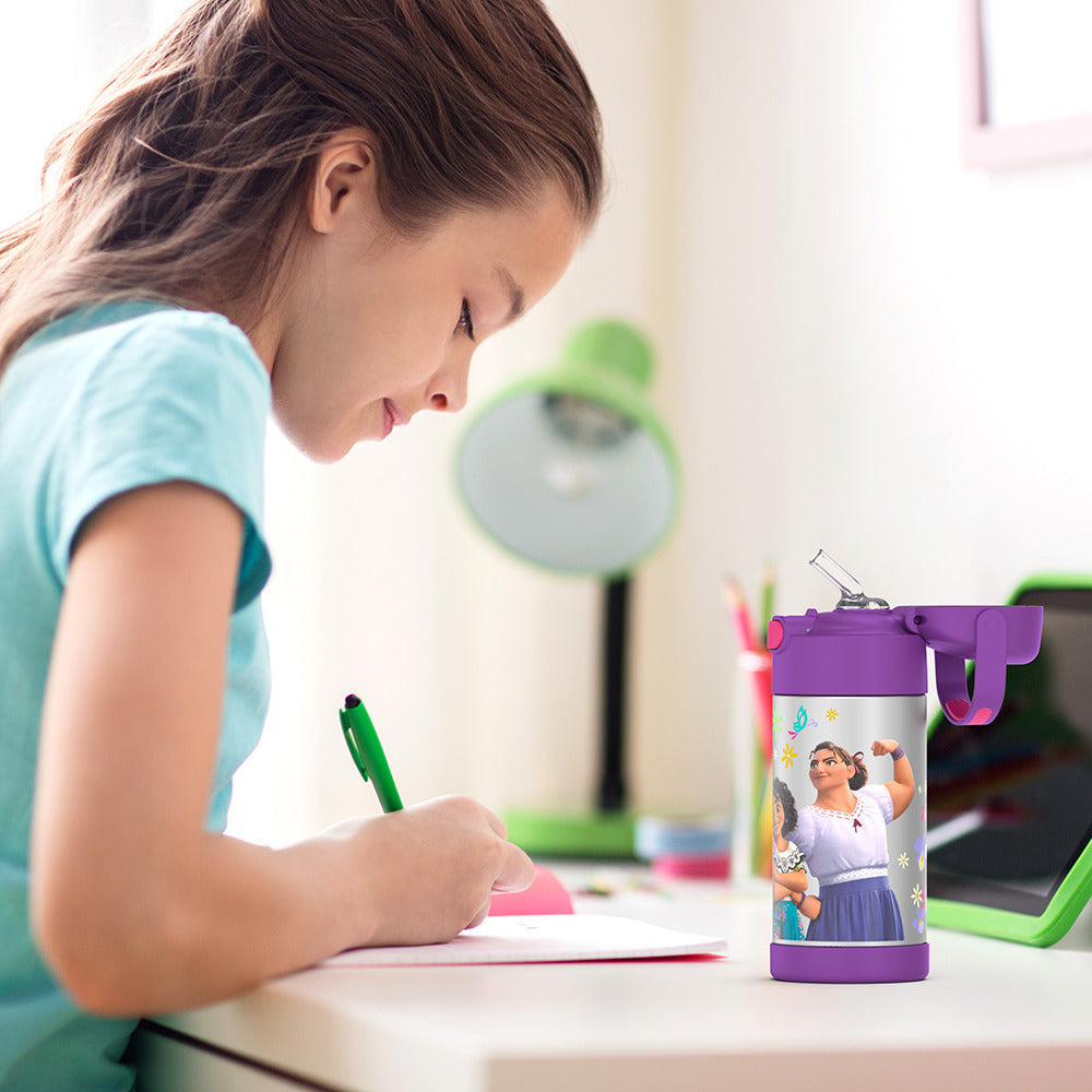 The FUNtainer® 12oz Vacuum Insulated Stainless Steel Water Bottle with Straw keeps drinks cold for up to 12 hours. The double wall stainless steel construction is built to handle drops. dings and assorted roughhousing. Includes an integrated carry handle with soft-touch grip. making it easy for kids to carry with them throughout the day. Help keep germs away with the hygienically covered silicone straw which is removable for easy cleaning. To clean. you can pop your FUNtainer water bottle in the dishwasher; however hand washing is recommended. Not for use with hot liquids. Label your FUNtainer bottle with adhesive name stickers that can be firmly adhered to any FUNtainer product. Two peel and stick labels are included inside this FUNtainer product. Fun for the kids. and easy for the parents. Just write. peel and stick!