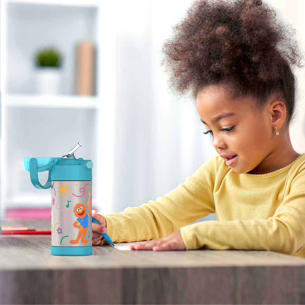 The FUNtainer® 12oz Vacuum Insulated Stainless Steel Water Bottle with Straw keeps drinks cold for up to 12 hours. The double wall stainless steel construction is built to handle drops. dings and assorted roughhousing. Includes an integrated carry handle with soft-touch grip. making it easy for kids to carry with them throughout the day. Help keep germs away with the hygienically covered silicone straw which is removable for easy cleaning. To clean. you can pop your FUNtainer water bottle in the dishwasher; however hand washing is recommended. Not for use with hot liquids. Label your FUNtainer bottle with adhesive name stickers that can be firmly adhered to any FUNtainer product. Two peel and stick labels are included inside this FUNtainer product. Fun for the kids. and easy for the parents. Just write. peel and stick!