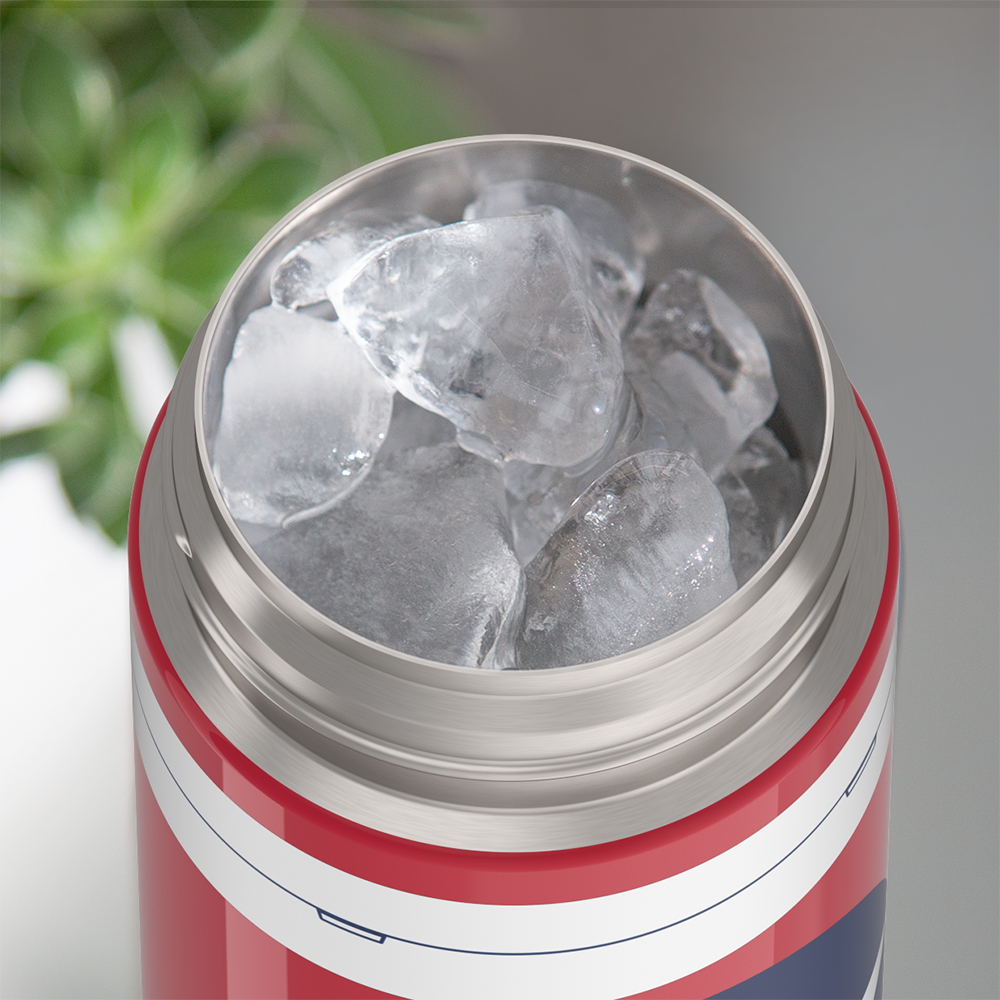 The FUNtainer® 16-ounce Vacuum Insulated Stainless Steel Water Bottle with Spout keeps drinks cold for up to 12 hours. The double wall stainless steel construction is built to handle drops. dings and assorted roughhousing. Includes a soft touch carry handle. making it easy for kids to carry with them throughout the day. This 16oz. FUNtainer® Bottle includes a redesigned spout for a more comfortable drinking experience and a locking ring to help secure the lid in place. Our new design also includes a translucent lid for a clear view of the drinking mechanism. Keep germs away with the hygienically covered drinking spout. To clean. you can pop your FUNtainer water bottle in the dishwasher; however washing by hand is recommended.