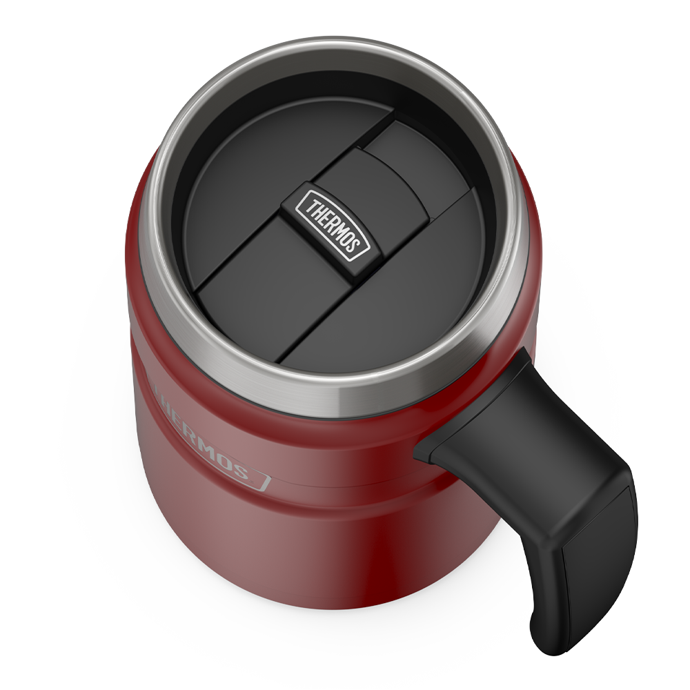 Keep your morning running smoothly with the Stainless King? 16oz Coffee Mug. Designed to be durable and dependable for daily use. this coffee mug is perfect for your office desk or workstation. Thermos? vacuum insulation maintains the temperature of your beverage to the last drop. Equipped with a slide lock lid.