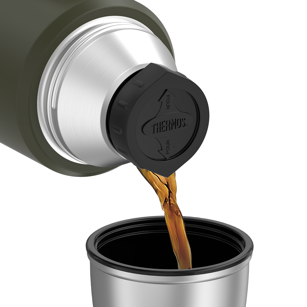 This Stainless King? 40oz Beverage Bottle is the perfect take-along for family camping and outdoor enthusiasts. The handy serving cup doubles as a lid. The twist and pour stopper feature means easy pouring and a tight seal. Not only will it keep your favorite beverages hot or cold for 24 hours. but 40oz of volume means serving the whole family is a breeze.