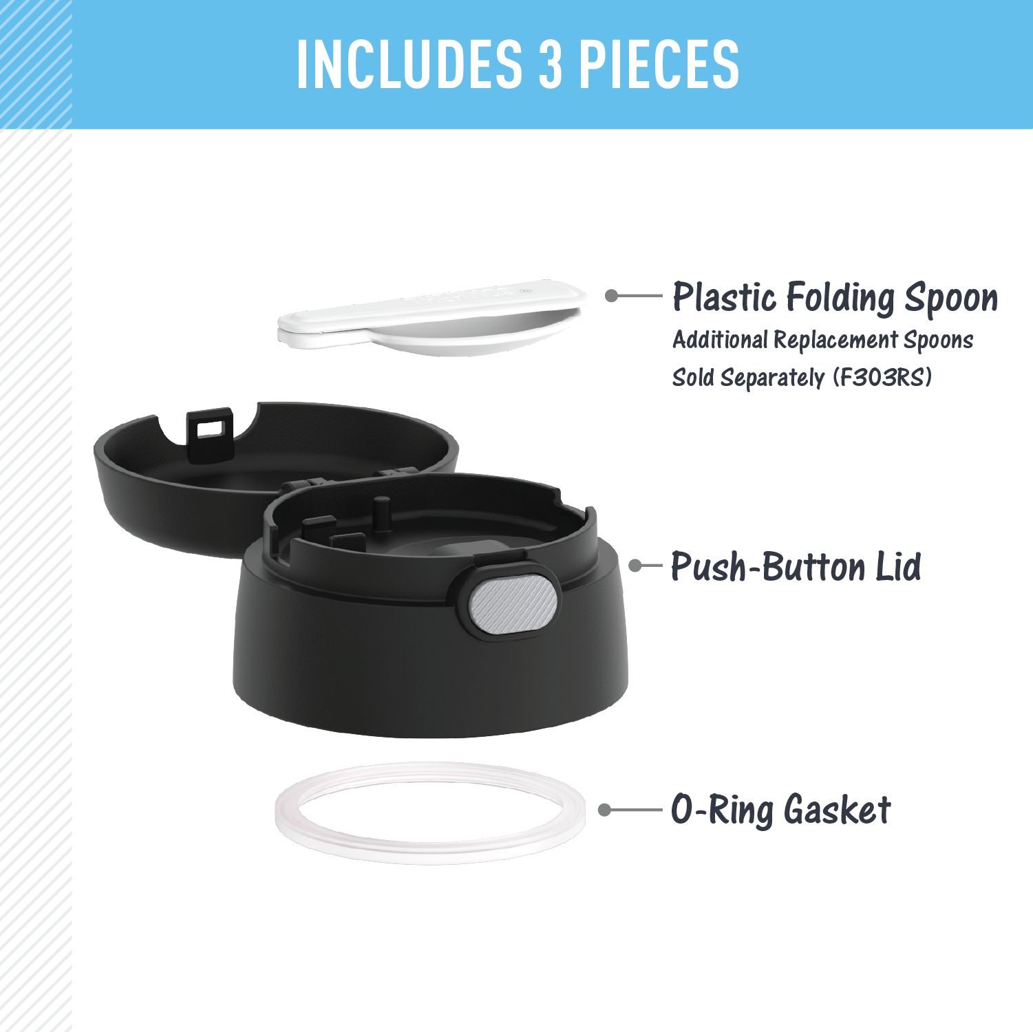 This FUNtainer? Food Jar Lid is a convenient way to replace your current lids. Complete with a folding spoon that is stored inside the lid. To clean. you can pop your lid in the dishwasher; however. washing by hand is recommended. This lid is compatible with F300. F310. F311 + F302/TS301 food jars.